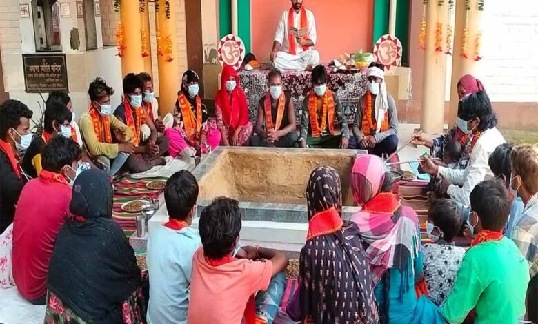 यूपी की राजधानी में कई तरह का प्रलोभन, लालच और डर दिखाकर हिंदू से मुस्लिम बने 12 लोगों की आज हिंदू धर्म में फिर से वापसी हुई। गोमती नगर, विशाल खंड- एक स्थित शिव भोला मंदिर में आयोजित इस कार्यक्रम में साधु-संतों ने वैदिक विधि- विधान के साथ इन सभी लोगों का शुद्धिकरण किया और हिंदू धर्म की वापसी की। इसके साथ ही इन्हें इनके मूल हिंदूनाम फिर से दिए गए। इस दौरान छांगुर बाबा की करतूतों को भी उजागर किया गया। बताया गया कि इकलौती लड़कियों और बेसहारा को लालच देकर टारगेट किया जाता है।