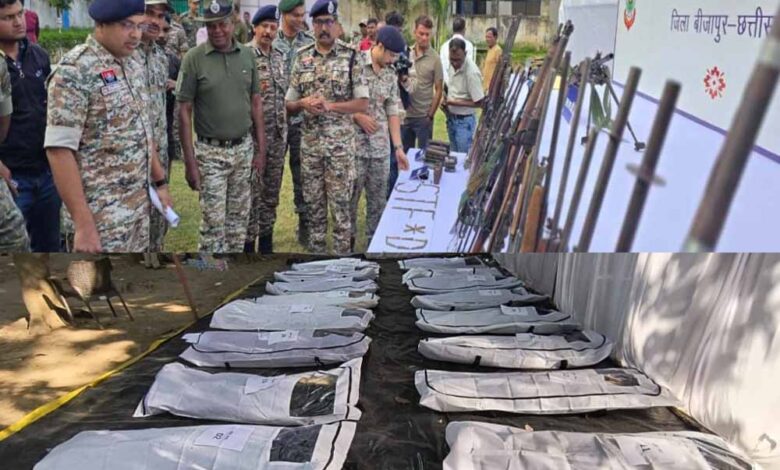 नक्सल-रोधी अभियान में निर्णायक वार: 18 इनामी नक्सली मारे गए, AK-47 व LMG समेत हथियार जब्त