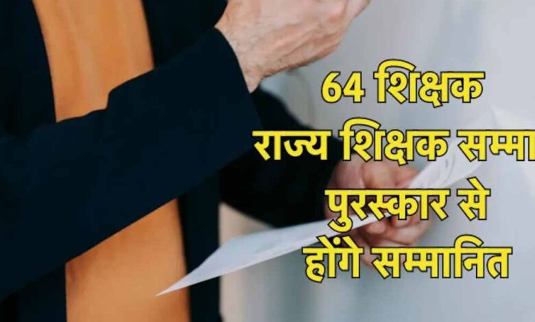 शिक्षक दिवस के अवसर पर उत्कृष्ट शैक्षणिक कार्य एवं सेवाओं के लिए राज्यपाल शिक्षक सम्मान पुरस्कार वर्ष 2024-25 हेतु प्रदेशभर के कुल 64 शिक्षकों का चयन किया गया है। राज्यपाल शिक्षक सम्मान पुरस्कार अंतर्गत चयनित शिक्षकों को आगामी 5 सितम्बर शिक्षक दिवस के अवसर पर राज्यपाल द्वारा सम्मानित किया जाएगा।