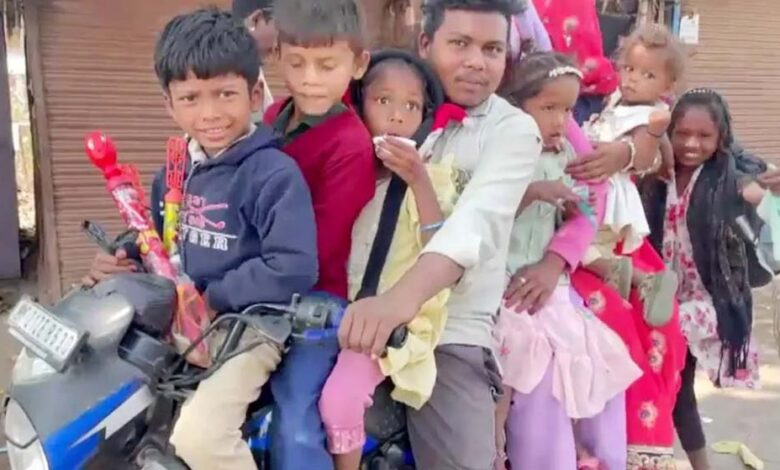 एक मोटर साइकिल में कितने लोग सवार हो सकते हैं- दो, तीन या हद से हद चार… लेकिन क्या कभी 9 सवारी बैठे देखा है? यह नजारा देखकर बाइक निर्माता कंपनी भी अपना माथा पीट लेगी |