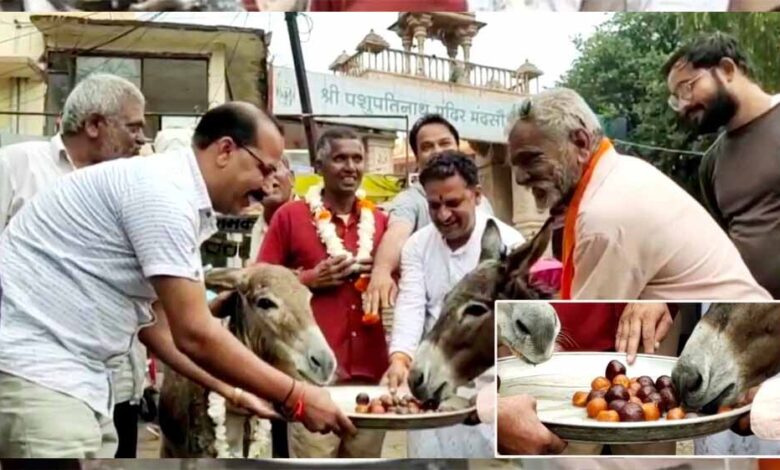 मध्य प्रदेश के मंदसौर में गधों को गुलाब जामुन खिलाए गए। मानसून आने के बाद भी यहां अच्छी बारिश नहीं हो रही थी। इस पर मान्यता के अनुसार अच्छी बारिश की कामना के साथ गधों से श्मशान में हल चलवाया गया था। श्मशान में नमक की बुआई की गई थी।