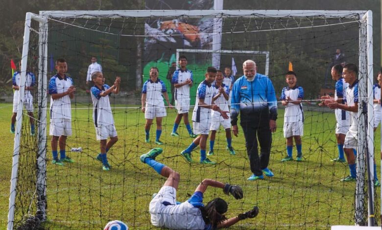 गोल के बाद पीएम मोदी ने खिलाड़ियों के साथ किया सेलिब्रेशन, फुटबॉल मैदान से खास तस्वीरें
