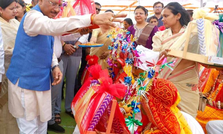 मुख्यमंत्री  विष्णु देव साय आज बलौदाबाजार भाटापारा जिले के ग्राम ओड़ान में बावनगढ़ आदिवासी ध्रुव गोंड़ समाज तुरतुरिया माता महासभा लवन के तत्वावधान में आयोजित गोंड़वाना आदर्श सामूहिक विवाह समारोह मे शामिल हुए। इस मौके पर  साय ने सामूहिक विवाह कार्यक्रम में पारम्परिक गोंडी रीति-रिवाज से दाम्पत्य सूत्र में बंधे 28 नवविवाहित जोड़ों क़ो आशीर्वाद व सुखमय दाम्पत्य जीवन की बधाई एवं शुभकामनायें दी।