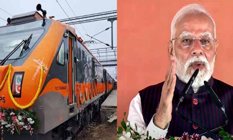 पीएम मोदी ने गुजरात के सूरत जिले में बरहामपुर को उधना से जोड़ने वाली अमृत भारत एक्सप्रेस को हरी झंडी दिखाई। उन्होंने कहा कि ब्रह्मपुर-उधना अमृत भारत ट्रेन से गुजरात में रह रहे ओड़िया लोगों को फायदा होगा। चिप से लेकर शिप तक भारत को आत्मनिर्भर बनाना हमारा संकल्प है। प्रधानमंत्री ने 1400 करोड़ रुपये की लागत से निर्मित 34 किलोमीटर लंबी कोरापुट-बैगुड़ा रेल लाइन और 82 किलोमीटर लंबे मनाबर-कोरापुट-गोरपुर खंड राष्ट्र को समर्पित किया। उन्होंने बीएसएनएल की स्वदेशी तकनीक से निर्मित 97,500 से अधिक 4जी दूरसंचार टावरों की शुरुआत की।