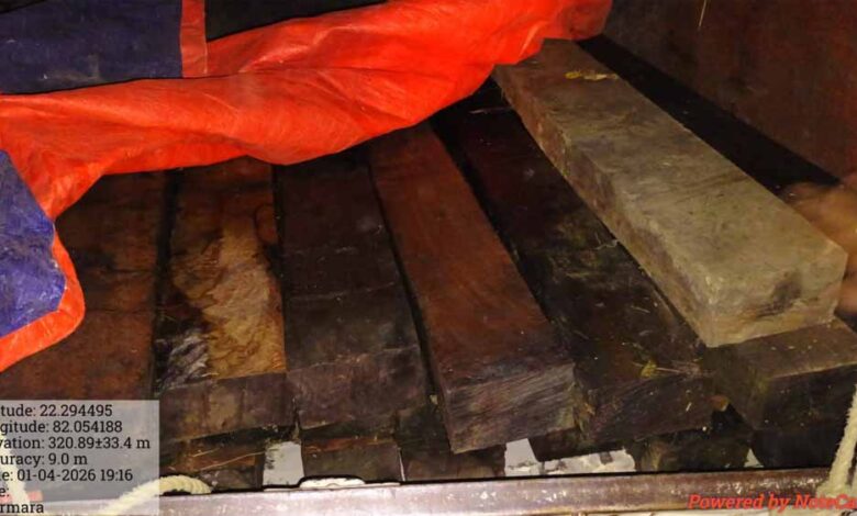 इसी क्रम में कोटा परियोजना मंडल, बिलासपुर की टीम ने गश्त के दौरान बड़ी कार्रवाई की। मुखबिर से मिली सूचना के आधार पर भैंसाझार परिक्षेत्र के बछाली बीट में ग्राम नवापारा और उमरमरा के बीच सड़क मार्ग पर एक पिकअप वाहन को रोककर जांच की गई। जांच के दौरान वाहन में साल प्रजाति की 27 नग लकड़ी (चिरान/चौखट) अवैध रूप से परिवहन करते हुए पाई गई। टीम ने तत्काल कार्रवाई करते हुए जितो प्लस पिकअप वाहन (क्रमांक CG-10BL-4663) को जब्त कर लिया।