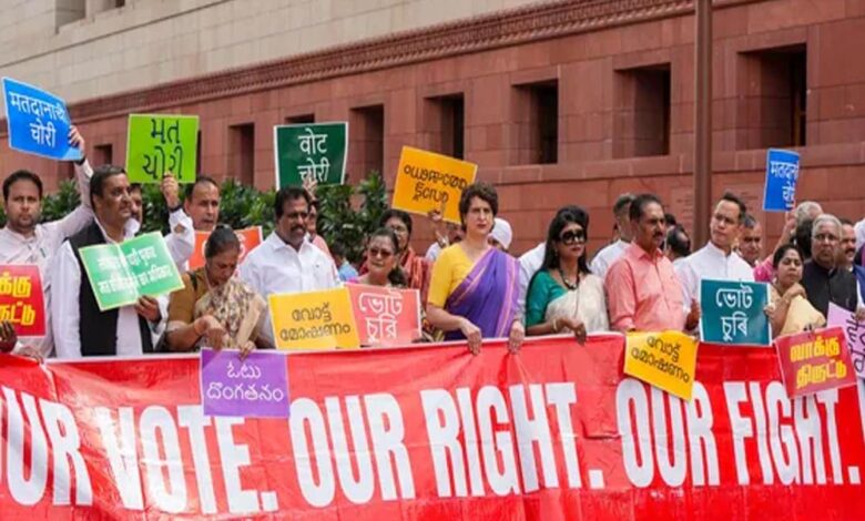 इंडिया गठबंधन के प्रमुख घटक दल कांग्रेस के पूर्व अध्यक्ष और लोकसभा में विपक्ष के नेता राहुल गांधी का सीधा आरोप है कि चुनाव आयोग भाजपा के साथ मिलकर वोट चोरी करवा रहा है और भाजपा को फायदा पहुंचा रहा है। गांधी के आवास पर पिछले सप्ताह आयोजित डिनर में इस विषय पर चर्चा के बाद तय हुआ था कि गठबंधन दलों के सांसद इस मुद्दे पर संसद भवन के मकर द्वार से चुनाव आयोग के कार्यालय तक ट्रांसपोर्ट भवन होते हुए मार्च करेंगे। इसमें संसद के दोनों सदनों के सदस्य भाग लेंगे।
