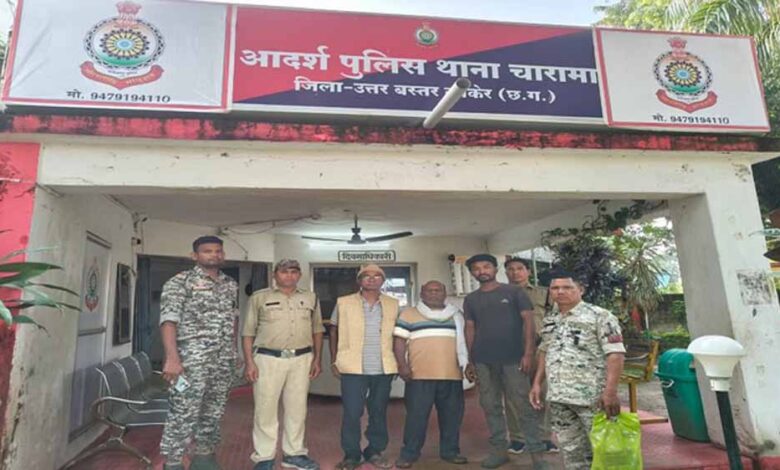 कांकेर में चारामा पुलिस ने फर्जी दस्तावेज तैयार कर शासकीय भूमि पर अवैध रूप से वन अधिकार पट्टा लेने के मामले में तीन लोगों को गिरफ्तार किया है। गिरफ्तार आरोपियों में ग्राम पंचायत मयाना की पूर्व सरपंच का पति जीवन ठाकुर, उसका पुत्र नीरज पोया और ग्राम के पूर्व में रहे सरपंच शोप सिंह शामिल हैं।