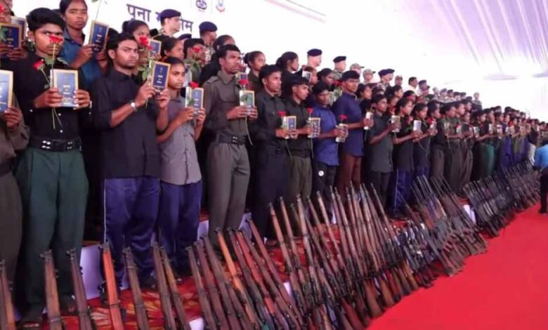 छत्तीसगढ़ के जगदलपुर आज नक्सलियों ने सबसे बड़ी संख्या में हथियार डालकर सरेंडर किया है. बस्तर संभाग के अबूझमाड़ और कांकेर के जंगलों से निकलकर कुल 208 नक्सलियों ने हिंसा छोड़कर मुख्यधारा से जुड़ने का फैसला किया है. इनमें 110 महिला नक्सली है और 98 पुरुष नक्सली शामिल हैं, जो सीसी मेंबर के साथ दंडकारण्य स्पेशल जोनल कमेटी जन जनमिलिसिया कमेटी के अलावा अन्य कैडर पर पदस्थ रहे हैं. नक्सली प्रवक्ता रूपेश के साथ-साथ अन्य सभी माओवादियों ने जगदलपुर पुलिस लाइन में मुख्यमंत्री साय के समक्ष हथियार डाले हैं.