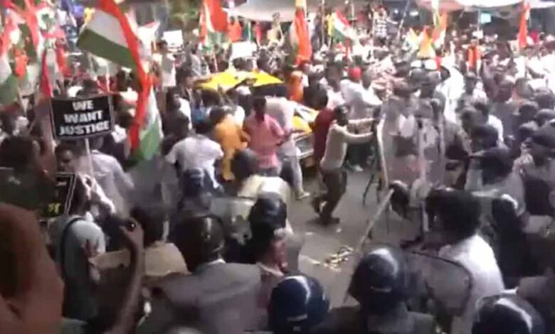 आरजी कर घटना की बरसी पर पश्चिम बंगाल सचिवालय की ओर मार्च करते हुए प्रदर्शनकारियों ने हावड़ा में पुलिस अवरोधक तोड़ने की कोशिश की। सचिवालय की ओर मार्च के दौरान घेरे को तोड़ने की कोशिश कर रहे प्रदर्शनकारियों पर पुलिस ने लाठीचार्ज किया। वहीं, पुलिस द्वारा रोके जाने पर भाजपा नेता शुभेंदु अधिकारी, अग्निमित्रा पॉल धरने पर बैठे गए।