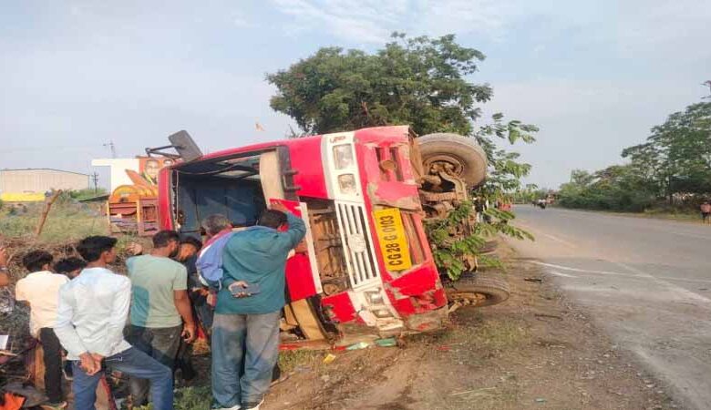 बिलासपुर-मुंगेली मुख्य मार्ग पर बारातियों से भरी बस पलटी, 3 की हालत गंभीर