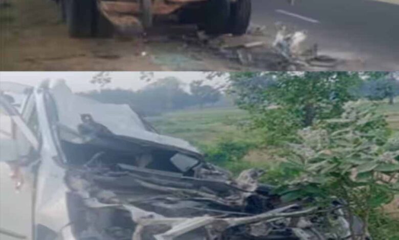 कार सीधे ट्रक से जा भिड़ी, तीन लोगों की मौत और 7 घायल