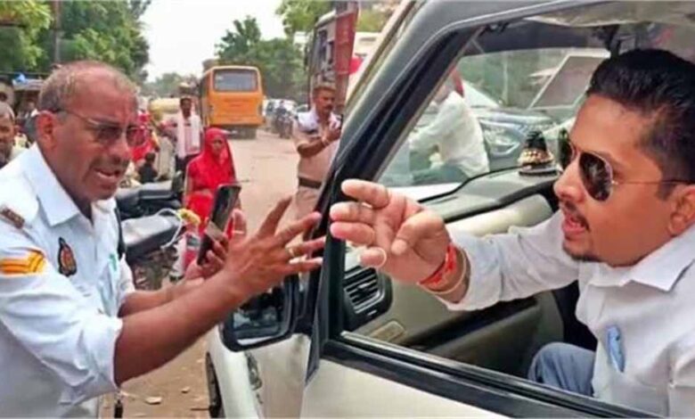 उत्तर प्रदेश के हाथरस जिले में भाजपा के एमएलसी ऋषिपाल सिंह के बेटे और एक ट्रैफिक पुलिसकर्मी के बीच एक तीखी बहस का वीडियो वायरल हो रहा है। यह विवाद सासनी कोतवाली क्षेत्र के निकट एक चौराहे पर हुआ, जहां ट्रैफिक जाम लगने के कारण कहासुनी हुई।