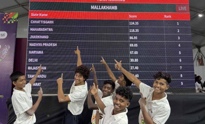 आज हुई स्पर्धा में छत्तीसगढ़ की मल्लखंभ टीम ने उत्कृष्ट प्रदर्शन करते हुए राष्ट्रीय खेल खेलो इंडिया एवं बीच गेम्स आदि के दोनों वर्गों में विजेता रहे। छत्तीसगढ़ ने 124.35 अंक के साथ प्रथम, महाराष्ट्र ने 118.35 अंक के साथ द्वितीय एवं झारखंड ने 86.95 अंक के साथ तृतीय स्थान हासिल किया।
