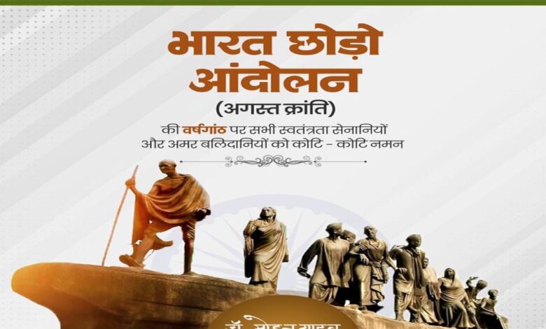 मुख्यमंत्री डॉ. मोहन यादव ने भारत छोड़ो आंदोलन में शामिल सभी सेनानियों का पुण्य स्मरण कर उनके योगदान को नमन किया है।