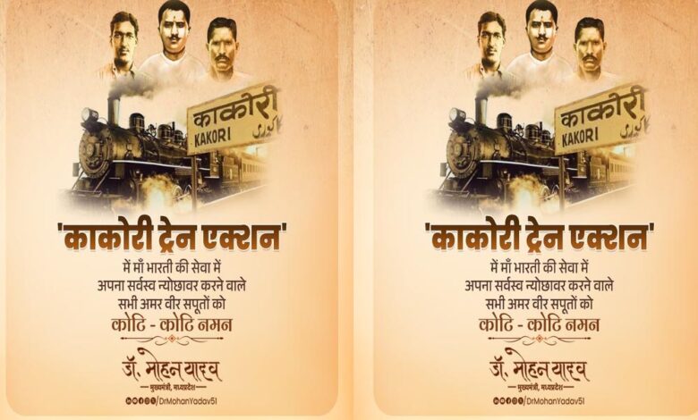 मुख्यमंत्री डॉ. मोहन यादव ने काकोरी एक्शन में शामिल सभी स्वतंत्रता सेनानियों को राष्ट्रहित में उनके योगदान को याद कर नमन-वंदन किया है।