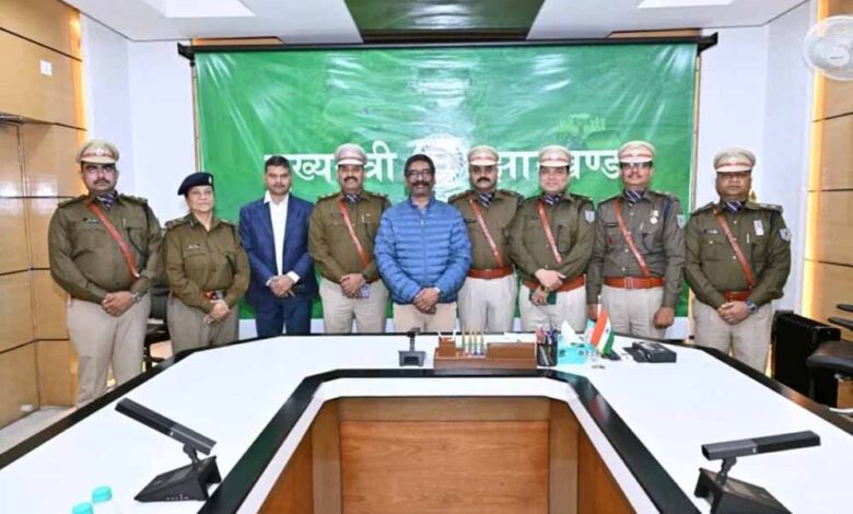 आईपीएस प्रमोट अधिकारियों को मुख्यमंत्री हेमंत सोरेन ने बैच पहनाकर किया सम्मानित