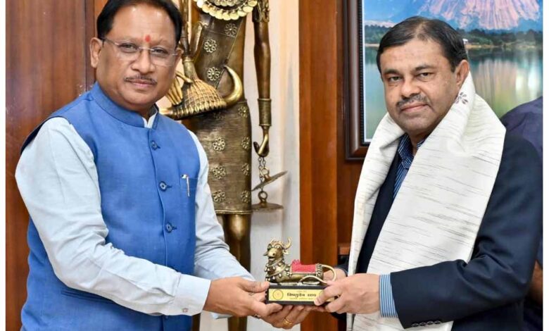मुख्यमंत्री विष्णु देव साय से राजधानी रायपुर स्थित मुख्यमंत्री निवास कार्यालय में इसरो अहमदाबाद केंद्र के निदेशक डॉ. एन. एम. देसाई के नेतृत्व में अंतरिक्ष वैज्ञानिकों के एक प्रतिनिधिमंडल ने सौजन्य भेंट की।