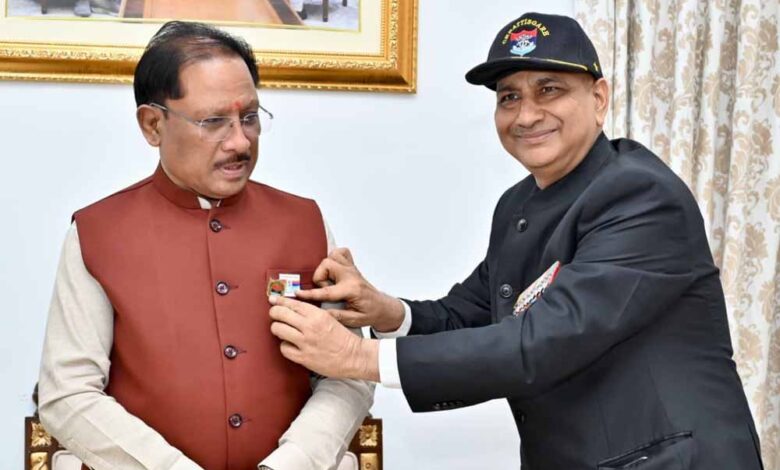 मुख्यमंत्री विष्णु देव साय से आज राजधानी रायपुर स्थित मुख्यमंत्री निवास कार्यालय में छत्तीसगढ़ राज्य सैनिक कल्याण बोर्ड के सचिव ब्रिगेडियर विवेक शर्मा ने सौजन्य भेंट की। इस अवसर पर उन्होंने मुख्यमंत्री साय को सशस्त्र सेना झंडा दिवस के प्रतीक स्वरूप सम्मान बैज लगाया तथा संचालनालय सैनिक कल्याण द्वारा संचालित विभिन्न कल्याणकारी गतिविधियों एवं योजनाओं की विस्तृत जानकारी प्रदान की।