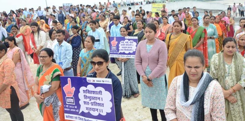 एसएसपी श्री संतोष सिंह ने कहा कि मजबूत लोकतंत्र के लिए अधिक से अधिक मतदान जरूरी है। मतदाता जागरूकता का संदेश हर तरफ हो, इसके लिए आयोजन किए जा रहे है। लोकतंत्र की भागीदारी में मतदान आवश्यक है। मतदाता जागरूकता के इस आयोजन के लिए प्रशासन की टीम को धन्यवाद देता हूं। कलेक्ट्रेट परिसर स्थित मल्टीलेवल पार्किंग की टेरिस पर हजारों की संख्या में आज अधिकारी व कर्मचारी मतदाता जागरूकता की शपथ ली। इस अवसर पर दिव्यांग, तृतीय लिंग समुदाय और मुकबधिरों मतदान के लिए संदेश दिया। साथ ही सबसे अधिक उम्र के मतदाता श्री कन्हैया राम बंछोर और श्री आर. एस. गुप्ता ने भी मतदाता जागरूकता का संदेश दिया। साथ ही नुक्कड़ नाटक का आयोजन किया गया और इस अवसर पर अधिकारी- कर्मचारियों ने एक स्वर में मतदाता जागरूक के संदेष का नारे भी लगाए। पूरा टेरिस मतदाता जागरूकता के संदेश से गूंज उठा।