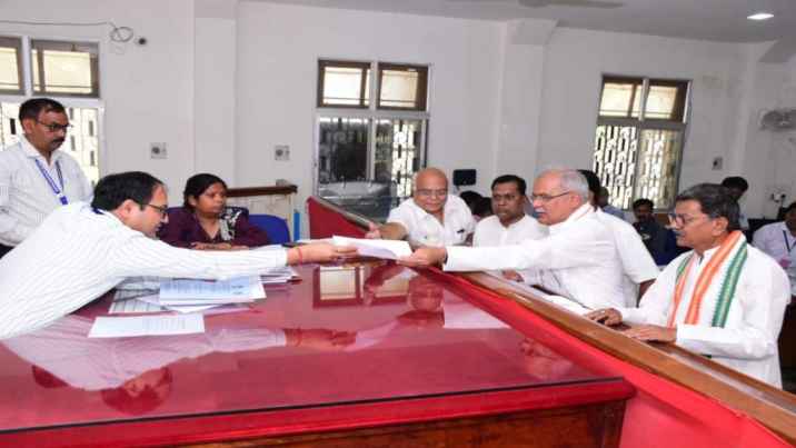राजनांदगांव लोकसभा सीट से कांग्रेस प्रत्याशी भूपेश बघेल ने मंगलवार को अपना नामांकन दाखिल किया। इस दौरान कलेक्ट्रेट में भूपेश बघेल के साथ नेता प्रतिपक्ष डॉ. चरणदास महंत, विधायक भोलाराम साहू सहित अन्य नेतागण उपस्थित थे। इस सीट पर पूर्व मुख्यमंत्री भूपेश बघेल का मुकाबला भाजपा सांसद सतोष पाण्डेय से है। राजनांदगांव सीट पर मतदान दूसरे चरण में 26 अप्रैल को होगा। दूसरे चरण के लिए नामांकन जमा करने की अंतिम तिथि 4 अप्रैल है।