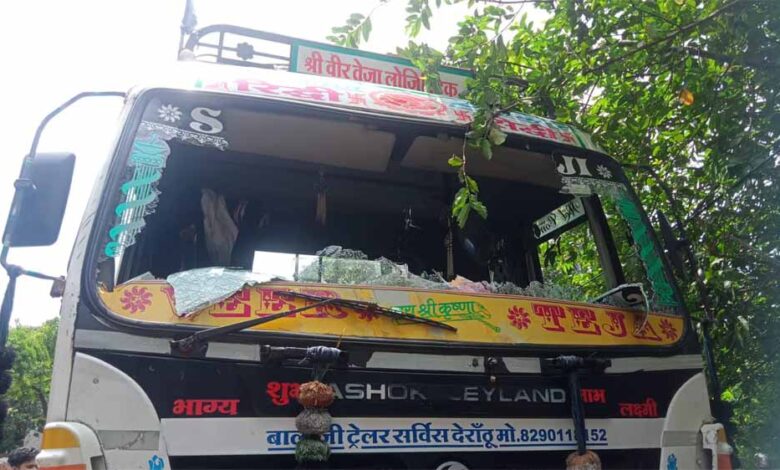 प्रदर्शनकारियों ने बस को क्षतिग्रस्त किया
