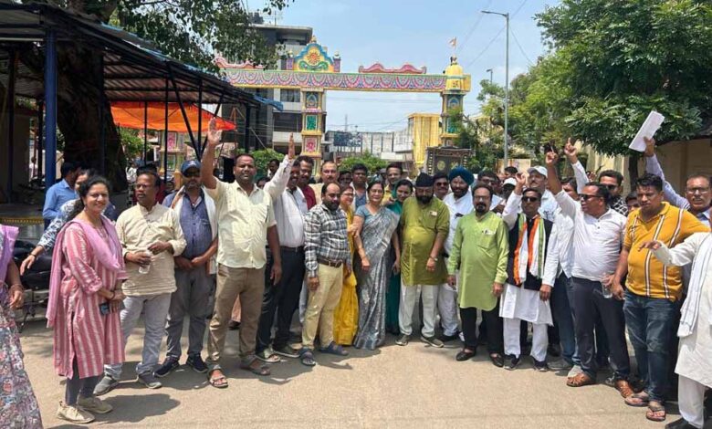 प्रदेश की भाजपा सरकार के जनविरोधी नीतियों व बिजली की दरों में की गई बेतहाशा वृद्धि एवं अघोषित बिजली कटौती को लेकर प्रदेश कांग्रेस कमेटी के निर्देश पर ब्लॉक कांग्रेस कमेटी शहर एवं ग्रामीण के द्वारा संयुक्त रूप से ब्लॉक कांग्रेस कमेटी के अध्यक्ष राजेश शर्मा एवं कार्यक्रम के प्रभारी पूर्व नगर पालिका अध्यक्ष राजकुमार केसरवानी के नेतृत्व में सोमवार को प्रातः 11:00 बजे से मनेंद्रगढ़ तहसील कार्यालय के समीप पीपल झाड़ के नीचे एक दिवसीय धरना प्रदर्शन किया गया .