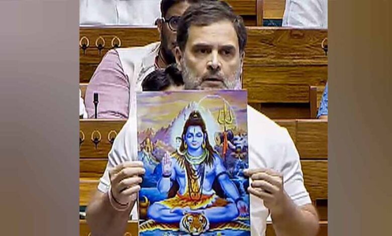 एक जुलाई को राहुल गांधी ने राष्ट्रपति के अभिभाषण पर चर्चा के दौरान संसद में भाजपा पर निशाना साधते हुए भगवान शिव की तस्वीर हाथ में ली थी। उन्होंने भगवान शिव के अलावा गुरु नानक और ईसा मसीह की तस्वीर भी दिखाई थी। उन्होंने कहा था कि हिंदू, इस्लाम, सिख और ईसाई, बौद्ध, जैन धर्म में निडर रहने को कहा गया है। उन्होंने कहा था, भारत अहिंसा का देश है और डर के लिए यहां कोई जगह नहीं है। ये डर का देश नहीं है। भगवान शिव कहते हैं- डरो मत, डराओ मत।' उन्होंने कहा कि हर धर्म में कहा गया है- डरो मत! गुरु नानक जी, जीसस क्राइस्ट, भगवान बुद्ध, भगवान महावीर.. सभी की तस्वीर में आपको अभय मुद्रा नजर आएगी। वे सभी कहते हैं- डरो मत और डराओ मत।