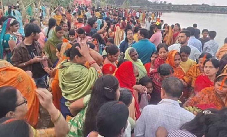 चैती छठ पर सूर्य देव को अर्घ देने कनहर नदी तट पर उमड़ी भीड़