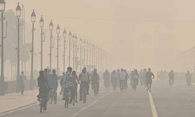अक्षरधाम, AIIMS और यशोभूमि समेत राजधानी के बड़े हिस्सों में घना स्मॉग छाया रहा।