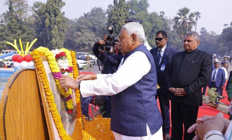 भारत के प्रथम राष्ट्रपति देशरत्न डॉ. राजेन्द्र प्रसाद की 141वीं जयंती के अवसर पर राजेन्द्र चौक स्थित उनकी प्रतिमा स्थल पर आयोजित राजकीय समारोह में राज्यपाल आरिफ मोहम्मद खान एवं मुख्यमंत्री नीतीश कुमार ने देशरत्न डॉ. राजेन्द्र प्रसाद के चित्र पर माल्यार्पण कर उन्हें नमन किया।