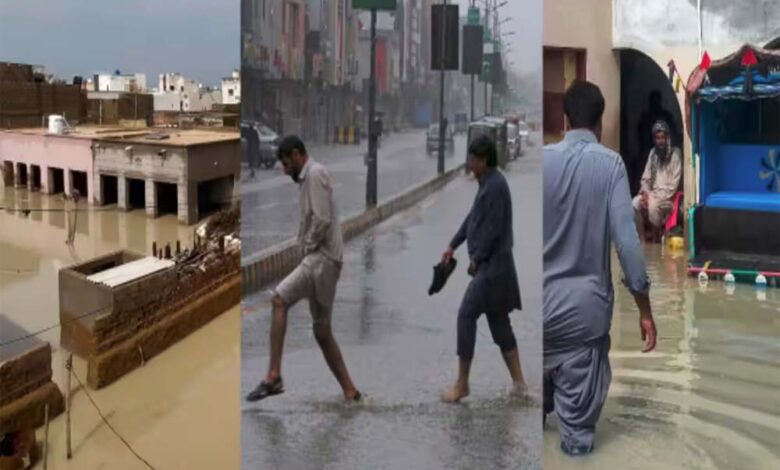 पाकिस्तान के बलूचिस्तान में लगातार तीन दिनों से भीषण बारिश जारी है। इसके चलते गलियां तालाब बन चुकी हैं और कई जगह सड़कें बह गई हैं। यही नहीं हालात इतने भीषण हैं कि सरकार ने बलूचिस्तान में आपातकाल घोषित कर दिया है। इस बारिश के चलते देश के अलग-अलग अब तक 39 लोगों की मौत हो चुकी है। इनमें से 12 लोगों की मौत अकेले खैबर पख्तूनख्वा में ही हो गई। इसके अलावा पंजाब में 4 और बलूचिस्तान में दो लोगों की मौत हो गई। बलूचिस्तान के मकरान में रविवार को भी भीषण बारिश हुई और कई जगहों पर बिजली भी गिरी। इन घटनाओं में दो और लोगों की मौत हो गई।