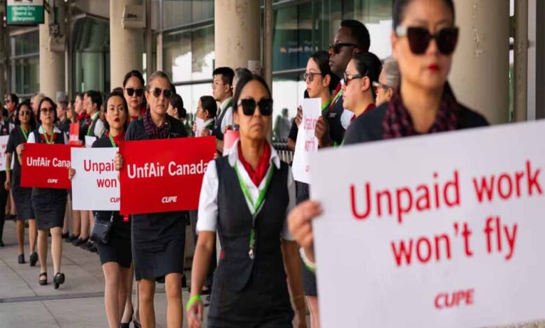 एयर कनाडा के 10,000 से अधिक ‘फ्लाइट अटेंडेंट' शनिवार तड़के हड़ताल पर चले गए, जिसके बाद कंपनी ने अपनी सभी उड़ानें निलंबित कर दीं। इस घटनाक्रम से शनिवार को दुनियाभर में एक लाख से अधिक यात्रियों के प्रभावित होने का अनुमान है। इस बीच, कनाडा सरकार ने विमानन कंपनी और उसके ‘फ्लाइट अटेंडेंट' के संघ पर काम पर लौटने और समझौता करने का दबाव तेज कर दिया है। संघीय रोजगार मंत्री पैटी हज्दू ने मामले में सरकारी हस्तक्षेप की घोषणा करते हुए कहा कि अभी अर्थव्यवस्था को जोखिम में डालने का समय नहीं है।