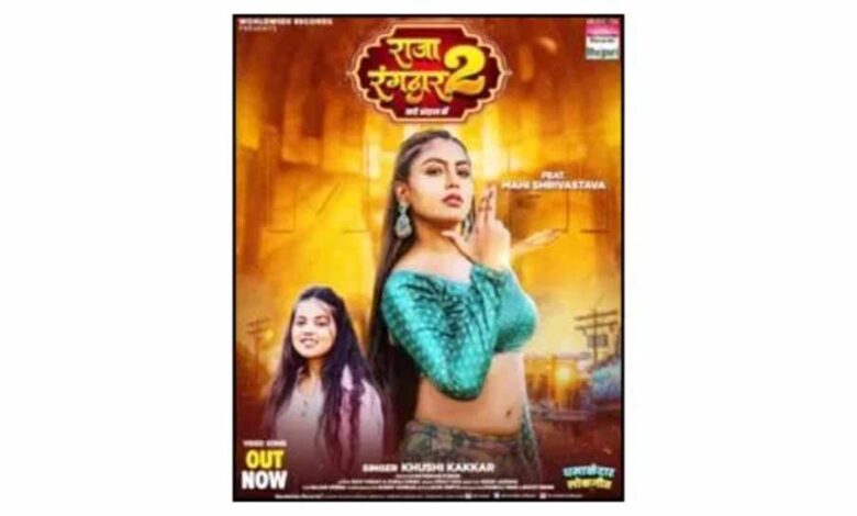 गायिका खुशी कक्कड़ और अभिनेत्री माही श्रीवास्तव की हिट जोड़ी में लोकगीत 'राजा रंगदार 2' रिलीज हो गया है। खुशी कक्कड़ और माही श्रीवास्तव की हिट जोड़ी में नया लोकगीत 'राजा रंगदार 2' धूम मचाने आ गया है,जिसे वर्ल्डवाइड रिकॉर्ड्स भोजपुरी म्यूजिक कंपनी के ऑफिसियल यूट्यूब चैनल पर रिलीज किया गया है। इस गाने को खुशी कक्कड़ ने खास शैली में गाया है।इसके वीडियो में माही श्रीवास्तव ने अलग तेवर में शानदार अदायगी की है।