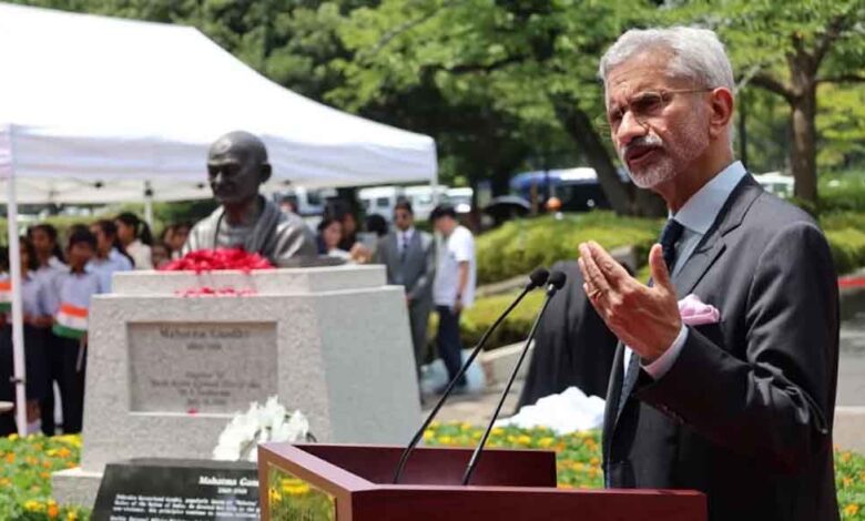 अपने दो दिवसीय दौरे के पहले दिन विदेश मंत्री ने जापान के एडोगावा में महात्मा गांधी की प्रतिमा का अनावरण किया। इस दौरान उन्होंने कहा कि 'ऐसे समय में जब पूरी दुनिया में संघर्ष बढ़ रहे हैं, काफी तनाव है और ध्रुवीकरण हो रहा है, खून-खराबा हो रहा है। ऐसे में ये बेहद अहम है कि हमें महात्मा गांधी के उस संदेश को याद करना चाहिए कि युद्ध के मैदान से शांति नहीं आ सकती और ये युग भी युद्ध का नहीं है। यह संदेश आज भी उतना ही प्रभावी है, जितना यह 80 साल पहले था।'