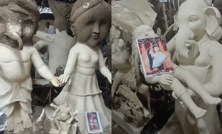 भगवान गणेश की आपत्तिजनक मूर्तियां बनाने को लेकर इंदौर में हंगामा खड़ा हो गया। भगवान गणेश को एक लड़की के संग दिखान पर हिंदूवादी संगठन के कार्यकर्ता भड़क उठे और कलाकारों के मुंह पर कालिख पोत दी। बाद में हंगामा बढ़ने पर पुलिस ने आरोपी मूर्तिकारों को गिरफ्तार कर लिया है। आरोपी पश्चिम बंगाल के रहने वाले हैं।
