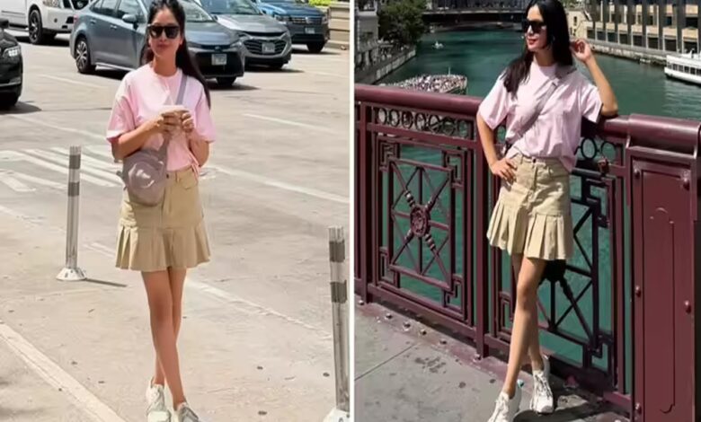 आउटफिट इतना परफेक्ट चुनने के बाद शुभांगी ने अपने लुक में एक भी कमी नहीं छोड़ी। तभी उन्होंने स्कर्ट और टी शर्ट के साथ आंखों पर काला चश्मा लगाकर पोज दिए। उनके चश्मा का स्कवायर फ्रेम है। जो कि हाफ क्लच बालों वाले हेयरस्टाइल के साथ चेहरे की खूबसूरती में चार- चांद लगाता दिख रहा है। और, लुक को बेस्ट बनाने के बाद शुभांगी विदेशी जमीन पर एक के बाद एक पोज देती नजर आईं।