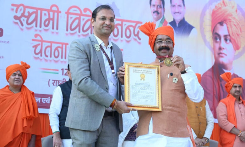 उप मुख्यमंत्री सह खेल मंत्री अरुण साव के मार्गदर्शन में आज स्वामी विवेकानंद जयंती राष्ट्रीय युवा महोत्सव पर बिलासपुर शहर ने इतिहास रचा है। खेल एवं युवा कल्याण विभाग द्वारा पुलिस ग्राउंड में आयोजित स्वामी विवेकानंद चेतना महोत्सव में 1500 बच्चों ने स्वामी विवेकानंद जी की वेशभूषा में सामूहिक रूप से पूर्ण वंदेमातरम का गायन किया। इस अवसर पर डिप्टी सीएम अरुण साव ने 1500 बच्चों को नशामुक्ति की शपथ दिलाई। और दूसरों को भी नशा के खिलाफ जागरूक करने का संकल्प लिया। श्री अरुण साव ने इस विश्व रिकॉर्ड के लिए गोल्डन बुक ऑफ वर्ल्ड रिकॉर्ड का प्रमाण पत्र प्राप्त किया।