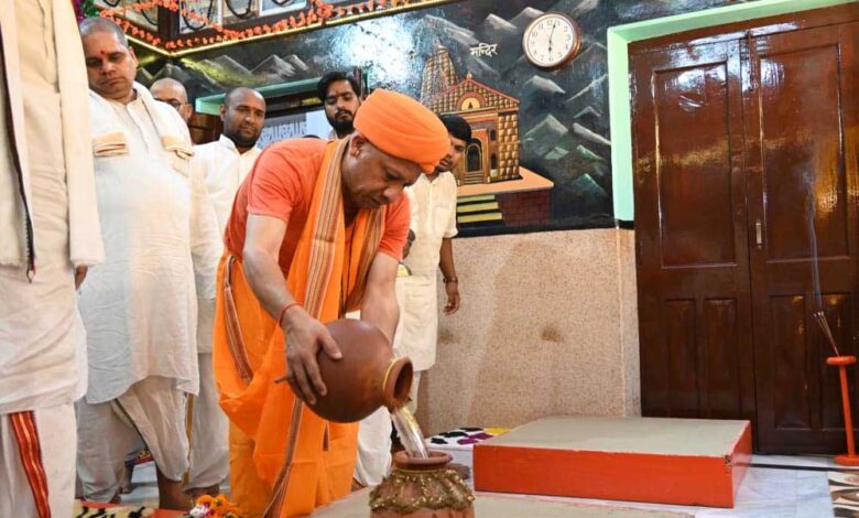 गोरखनाथ मंदिर के शक्तिपीठ में गोरक्षपीठाधीश्वर एवं मुख्यमंत्री योगी आदित्यनाथ ने की कलश स्थापना