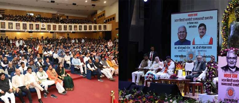 उपराष्ट्रपति श्री सी.पी. राधाकृष्णन ने कहा है कि स्व. श्री अटलजी केवल एक व्यक्ति नहीं, बल्कि एक विचार और मिशन थे। उनके कर्म, आदर्श और सुशासन की दृष्टि आने वाली पीढ़ियों के लिए मार्गदर्शक प्रकाश हैं। वे रविवार को इंदौर में आयोजित भारत रत्न स्व. श्री अटल बिहारी वाजपेयी जन्म शताब्दी समारोह को संबोधित कर रहे थे। समारोह में राज्यपाल श्री मंगुभाई पटेल ने कहा कि स्व. श्री अटल जी का जीवन ऐसे ग्रंथ की भाँति था, जिसका प्रत्येक पृष्ठ नैतिकता, उत्कृष्टता और राष्ट्रधर्म की राह दिखाता है। स्व. श्री अटल जी केवल राजनेता नहीं थे, बल्कि वे कवि, चिंतक, अद्भुत नेतृत्व गुणों से संपन्न, विनम्र, संवेदनशील और स्वाभिमानी राष्ट्रभक्त थे।