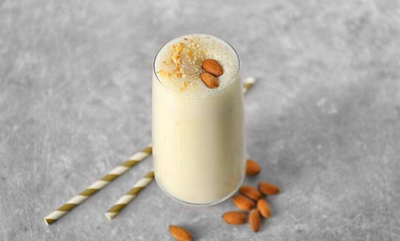 ठंडा होने के बाद, बादाम मिल्क शेक को गिलास में डालें। ऊपर से बारीक कटे हुए बादाम और पिस्ता डालकर गार्निश करके सर्व करें।