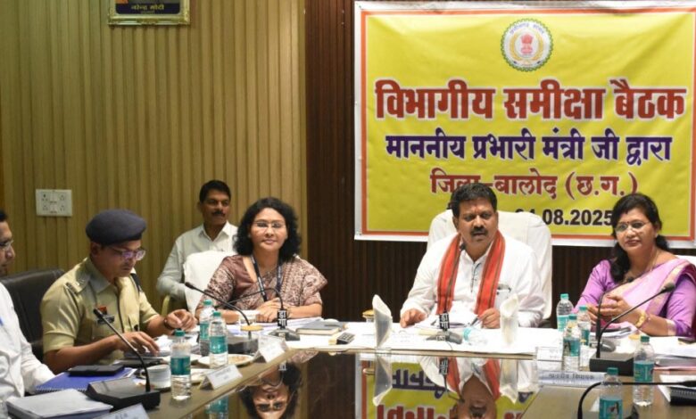 उपमुख्यमंत्री एवं बालोद जिले के प्रभारी मंत्री विजय शर्मा ने आज सयुक्त जिला कार्यालय सभाकक्ष में जिला स्तरीय अधिकारियों की समीक्षा बैठक लेकर जिले में शासकीय योजनाओं के क्रियान्वयन की स्थिति की विस्तृत समीक्षा की। उन्होंने अधिकारियों को पूरी प्रतिबद्धता के साथ कार्य करते हुए निर्धारित समयावधि में शासकीय योजनाओं का समुचित क्रियान्वयन सुनिश्चित करने के निर्देश दिए। शर्मा ने जिले के सभी अधिकारी-कर्मचारियों को पूरी निष्ठा एवं ईमानदारी के साथ कार्य करते हुए बालोद जिले को प्रत्येक दृष्टि से उत्कृष्ट, अग्रणी एवं आदर्श जिला बनाने में अपनी अमूल्य सहभागिता सुनिश्चित करने को कहा। शर्मा ने कहा कि प्रत्येक शासकीय सेवक को शासकीय सेवा में चयनित होने के पश्चात् जनसेवा करने का भी पुनीत अवसर प्राप्त होता है।