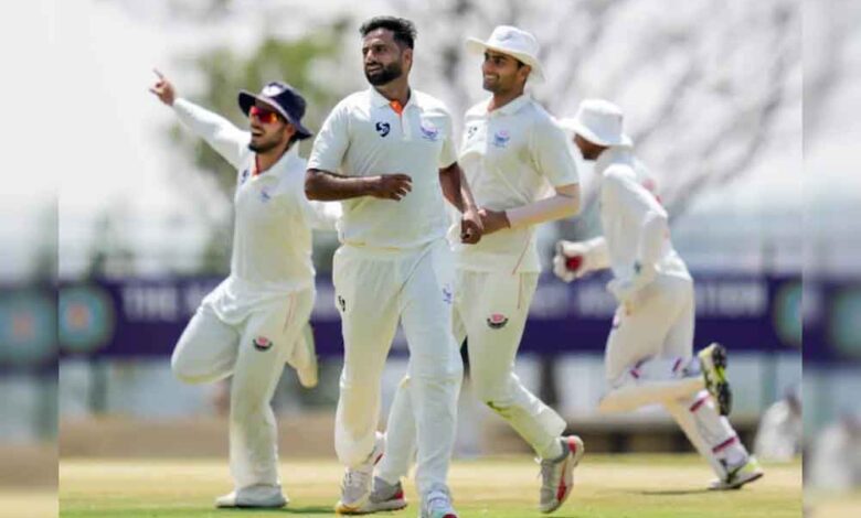 जम्मू-कश्मीर ने तेज गेंदबाज औकिब नबी की धारदार गेंदबाजी से कर्नाटक के शीर्ष क्रम को ध्वस्त करते हुए बृहस्पतिवार को यहां तीसरे दिन मयंक अग्रवाल के नाबाद शतक के बावजूद पहली पारी में मेजबान टीम का स्कोर पांच विकेट पर 220 रन करके अपना पलड़ा भारी रखा। दिन का खेल खत्म होने पर अग्रवाल 130 रन बनाकर खेल रहे थे जबकि विकेटकीपर कृतिक कृष्णा 27 रन बनाकर उनका साथ निभा रहे हैं। कर्नाटक की टीम अब भी पहली पारी के आधार पर मेहमान टीम से 364 रन पीछे है। नबी ने जम्मू-कश्मीर के लिए शानदार प्रदर्शन करते हुए 14 ओवर में 32 रन देकर तीन विकेट चटकाए। जम्मू-कश्मीर ने इससे पहले शुभम पुंडीर के 121 रन की मदद से अपने पहले रणजी फाइनल में पहली पारी में 584 रन का बड़ा स्कोर बनाया। क्वार्टर फाइनल में मध्य प्रदेश के खिलाफ 12 विकेट चटकाने वाले 28 साल के नबी ने पूरे सत्र में टीम के लिए शानदार प्रदर्शन किया और मौजूदा सत्र में उनके विकेटों की संख्या 58 हो गई है जो उत्तराखंड के स्पिनर मयंक मिश्रा के 59 विकेट से सिर्फ एक कम है