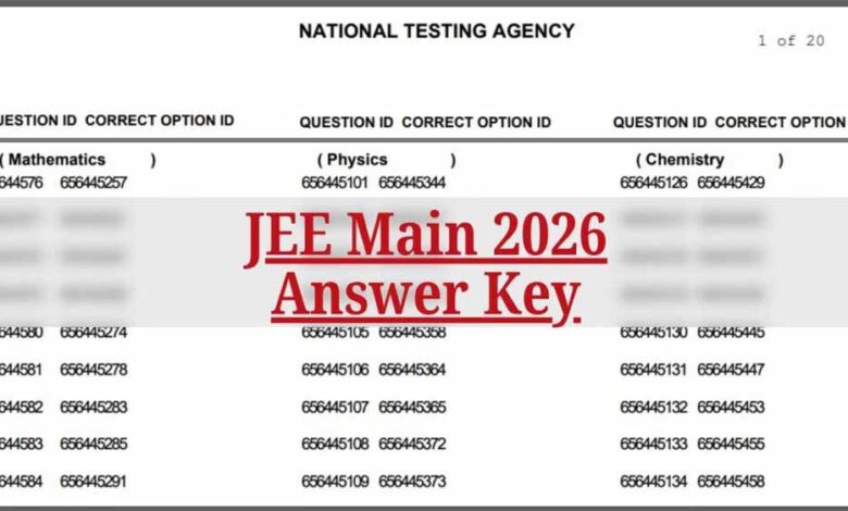 JEE Main Answer Key 2026 OUT, jeemain.nta.nic.in : एनटीए यानी नेशनल टेस्टिंग एजेंसी ने बुधवार को इंजीनियरिंग प्रवेश परीक्षा जेईई मेन सेशन 1 की आंसर-की जारी कर दी। परीक्षार्थी जेईई मेन आधिकारिक वेबसाइट jeemain.nta.nic.in पर जाकर आंसर-की चेक व डाउनलोड कर सकते हैं। जेईई मेन की प्रोविजनल आंसर-की पर 6 फरवरी, 2026 तक आपत्ति दर्ज कराई जा सकती है। आंसर-की के साथ रिस्पॉन्स शीट भी आई है जिसे देखकर अभ्यर्थी अपने उत्तरों का मिलान कर सकते हैं। किसी प्रश्न के उत्तर पर आपत्ति होने पर उम्मीदवार प्रति सवाल 200 रुपये के हिसाब से ऑब्जेक्शन दर्ज करा सकेंगे। सब्जेक्ट एक्सपर्ट्स सभी चैलेंज की जांच करेंगे और उसके आधार पर फाइनल आंसर की जारी होगी। फाइनल आंसर की के आधार पर परिणाम जारी होगा। आपको बता दें कि इस बार जेईई मेन 2026 सेशन 1 के लिए कुल 1350969 अभ्यर्थी पंजीकृत थे। इसमें से 1300368 यानी 96.26 फीसदी ने एग्जाम दिया था।
