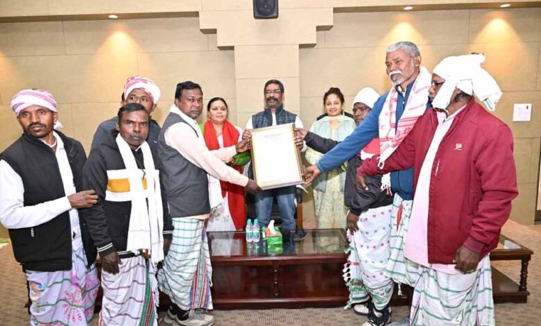 झारखंड में पेसा नियमावली को राज्य मंत्रिपरिषद से मंजूरी मिलने का जश्न पूरा राज्य मना रहा है। इस कड़ी में राज्य के अनुसूचित जनजातीय क्षेत्र से आए पारंपरिक प्रधान/ प्रमुख/ मुखिया के साथ सिविल सोसाइटी के प्रतिनिधियों ने मुख्यमंत्री आवासीय परिसर में मुख्यमंत्री हेमन्त सोरेन को पेसा नियमावली लागू करने की दिशा में लिए गए निर्णायक फैसले के लिए आभार जताया।