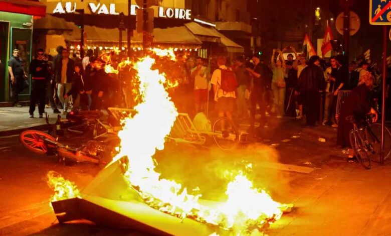 अंतिम परिणामों के सामने आने से पहले ही फ्रांस में भीषण हिंसा का माहौल है। प्रदर्शकारियों ने चुनाव नतीजों के रुझानों के साथ फ्रांस की सड़कों पर कब्जा कर लिया है। फ्रांस की राजधानी पेरिस में प्रदर्शनकारियों ने सड़कों पर गाड़ियों को इकट्ठा करके आग लगा दी और पुलिस से भी भिड़ गए।