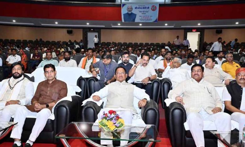 प्रधानमंत्री नरेन्द्र मोदी के लोकप्रिय मासिक रेडियो कार्यक्रम ‘मन की बात’ की 125वीं कड़ी का सीधा प्रसारण आज नवा रायपुर स्थित डॉ. श्यामा प्रसाद उद्योग एवं व्यापार परिसर के कन्वेंशन सेंटर में हुआ। कार्यक्रम में मुख्यमंत्री श्री विष्णु देव साय, खाद्य मंत्री दयालदास बघेल, उद्योग मंत्री लखन देवांगन, राजस्व मंत्री टंक राम वर्मा, कौशल विकास एवं रोजगार मंत्री गुरु खुशवंत साहेब, विधायक इंद्र कुमार साहू तथा छत्तीसगढ़ राज्य औद्योगिक विकास निगम के अध्यक्ष राजीव अग्रवाल सहित बड़ी संख्या में जनप्रतिनिधिगण और नागरिक उपस्थित थे।