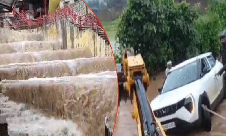 सतना में रपटे को पार करने की कोशिश में कार तेज बहाव में बह गई। लोगों ने कार सवार युवक को सुरक्षित बाहर निकाल लिया।