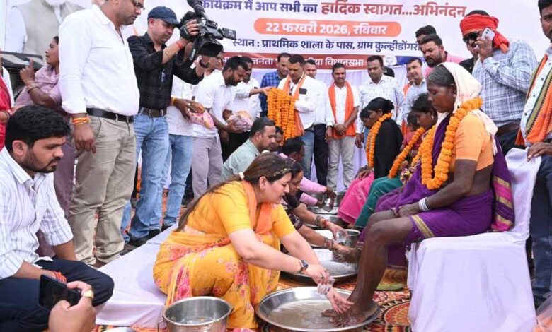 ग्राम कुलहीडोंगरी में आयोजित ‘संस्कृति गौरव सम्मेलन एवं अभिनंदन समारोह’ में बड़ी संख्या में ग्रामीण शामिल हुए। कार्यक्रम का माहौल पारंपरिक और सांस्कृतिक रंग में रंगा नजर आया। विधायक भावना बोहरा ने धर्म वापसी करने वाले सभी लोगों का पारंपरिक रीति-रिवाज से पैर पखारकर और नारियल भेंट कर सम्मानपूर्वक स्वागत किया। आयोजकों के अनुसार, इस पहल को क्षेत्र में सांस्कृतिक अस्मिता, परंपरा और सामाजिक एकजुटता के संरक्षण से जोड़कर देखा जा रहा है।