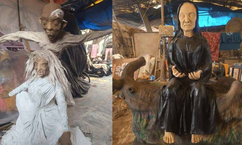 इसी कड़ी में शहर के प्रसिद्ध कालीबाड़ी चौक पर साल 2024 में रिलीज हुई हॉरर फिल्म ‘मुंज्या’ की थीम पर आधारित होलिका की मूर्ति लोगों का ध्यान खींच रही है। “मुंज्या” थीम के साथ बनाई गई इस मूर्ति के पास फिल्म के प्रसिद्ध किरदारों की झलक भी देखने को मिल रही है, जो लोगों के लिए आकर्षण का केंद्र बनी हुई है। इस अनोखी प्रतिमा को कालीबाड़ी चौक के पुजारी मूर्तिकार बंधुओं ने तैयार किया है। मूर्तिकार राकेश पुजारी ने लल्लूराम डॉट कॉम से बातचीत करते हुए बताया कि वे पिछले 15 वर्षों से अलग-अलग थीम की मूर्तियां बना रहे हैं। इस बार मुंज्या फिल्म का ट्रेंड काफी चल रहा है। इस थीम पर होलिका माता के हाथ में प्रह्लाद भी नजर आएंगे।