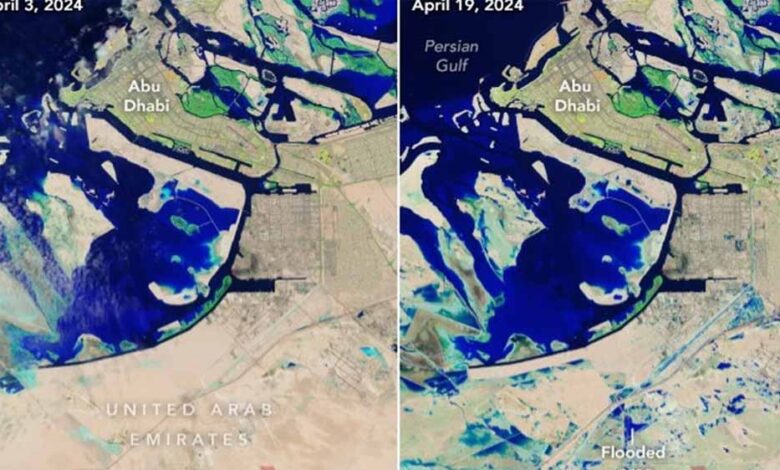 पिछले हफ्ते संयुक्त अरब अमीरात (UAE) में हुई रिकॉर्ड तोड़ बारिश और बाढ़ ने भारी तबाही मचाई थी. इस बारिश के कारण दुबई शहर की कई जगहों में पानी भरा गया था.अब स्पेस एजेंसी नासा ने बाढ़ के बाद और बाढ़ के पहले की सैटेलाइट तस्वीरें जारी की हैं. इन तस्वीरों में दुबई में बारिश के असर को देखा जा सकता है.